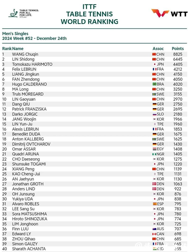 查看更多国际乒联世界排名藏玄机:男单前十国乒只占3席,保分压力陡增